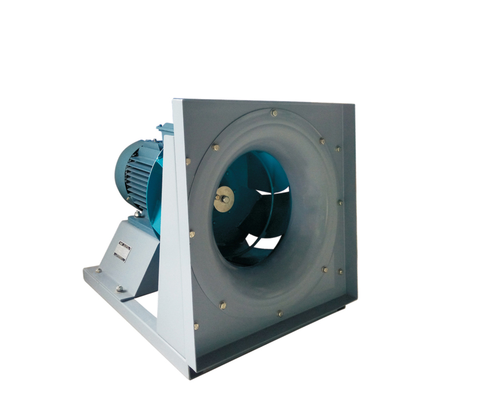 KF(B)系列无蜗壳离心通风机,标准规格从355~1120共11个机号。按用户不同使用需要,机组设有A式传动配变频电机调速和E式传动带轮调速两种基本传动方式。